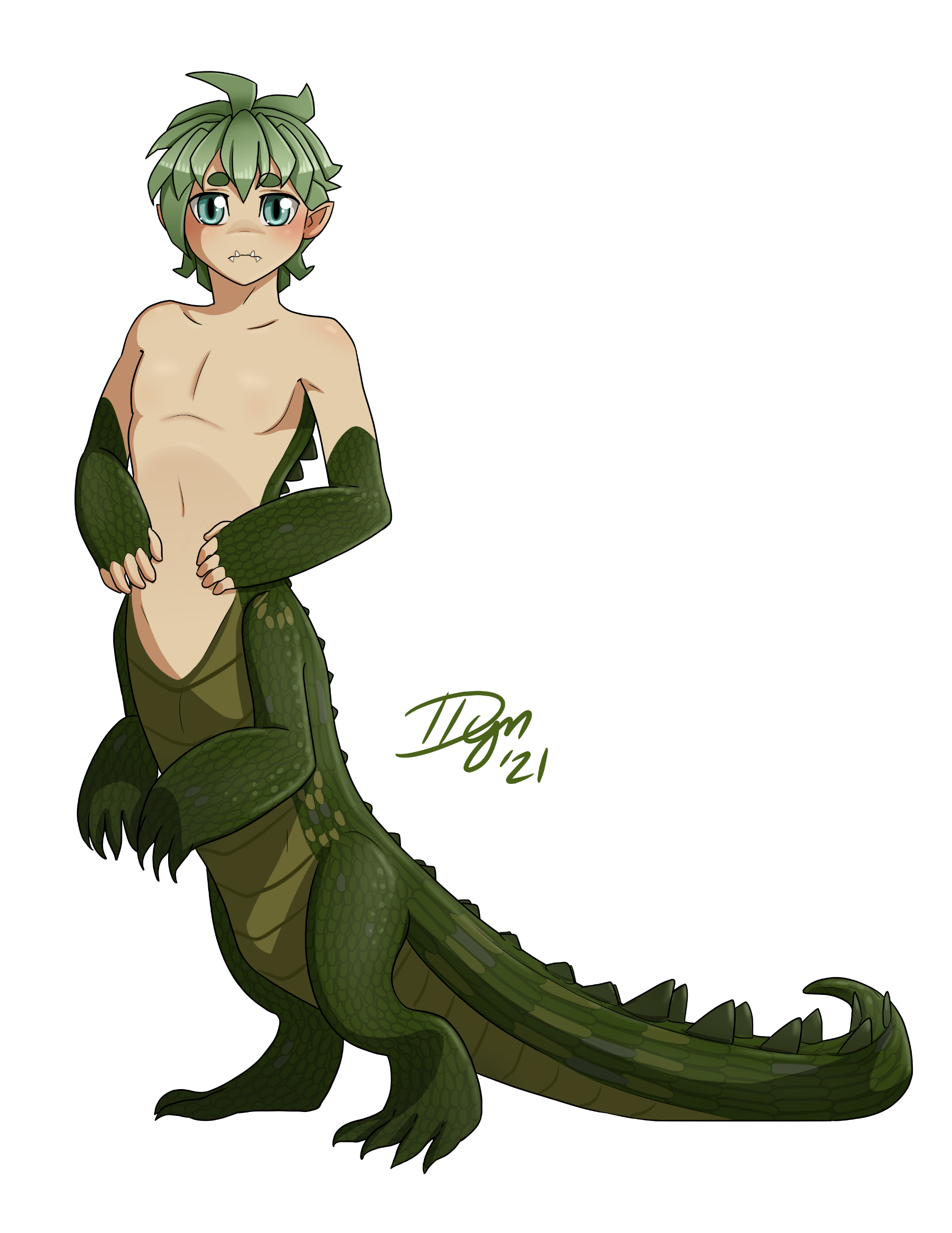 Crocodile boys have a large size range, typically bigger than a human, and may appear as any ethnicity with largely green or brownish coloring. They have a humanoid penis of medium or smaller size, which is tucked inside their body and is permanently erect. They breed through oviparity, and only in water.